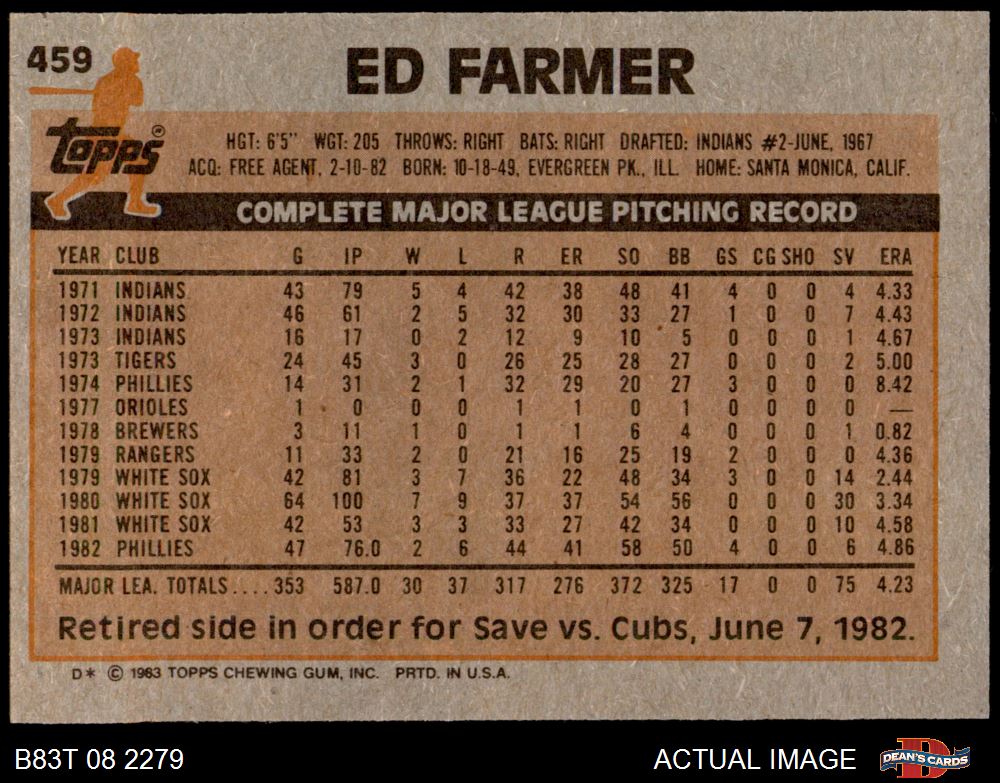 1983 Topps #459 Ed Farmer 8 - NM/MT