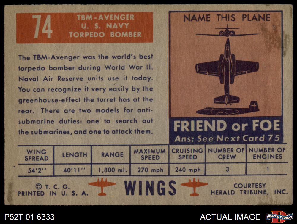 1952 Topps Wings #74 TBM Avenger 4 - VG/EX