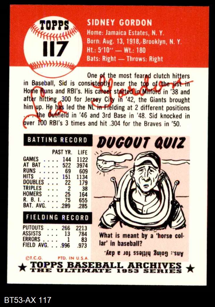 1953 Topps Archives #117 Sid Gordon 8 - NM/MT