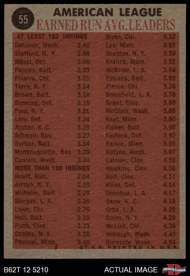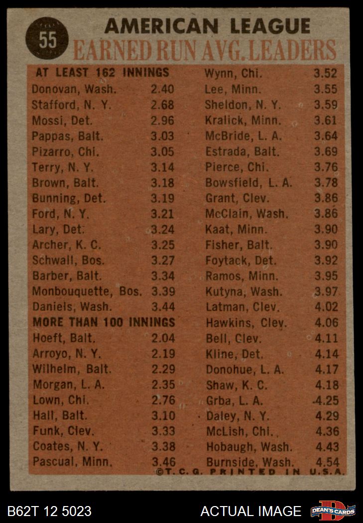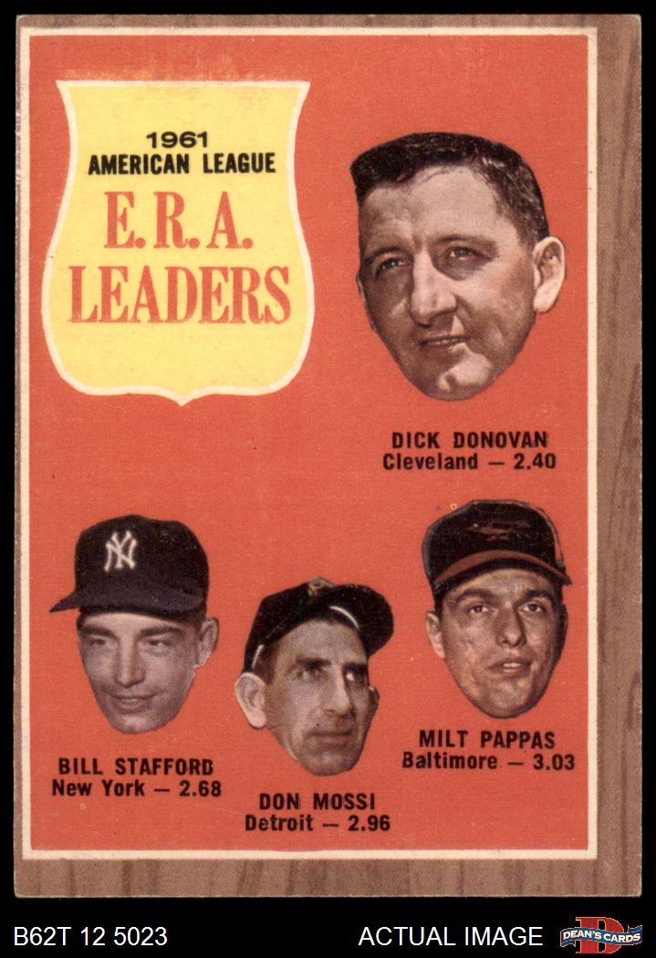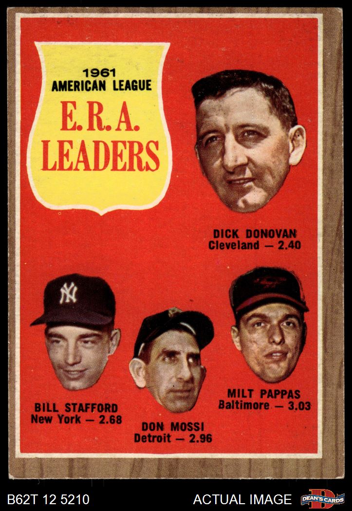 1962 Topps #55 - Dick Donovan / Bill Stafford / Don Mossi / Milt Pappas AL ERA Leaders 3 - VG