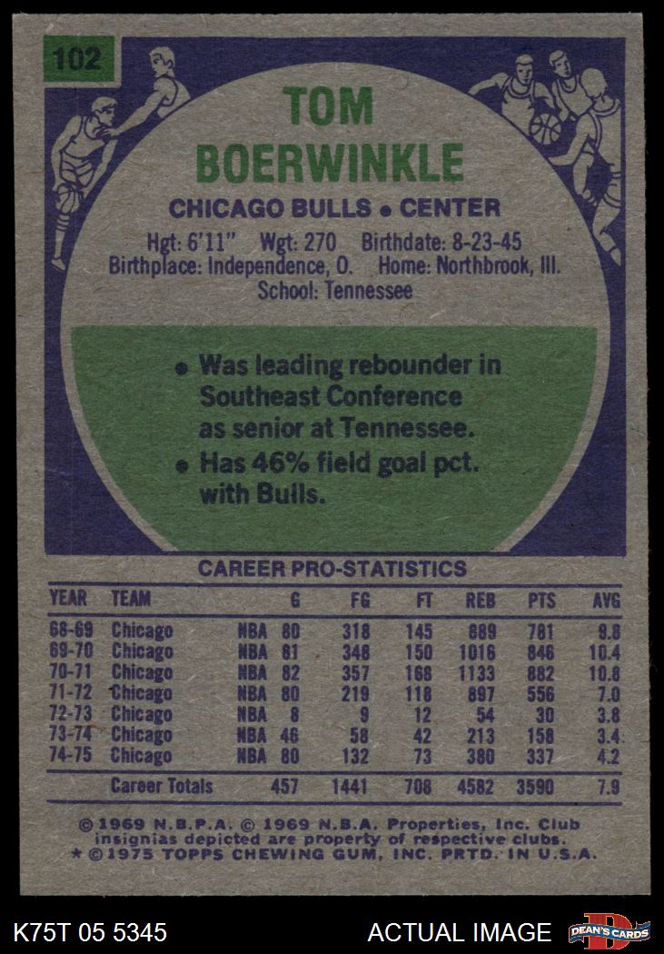 1975 Topps #102 Tom Boerwinkle 7 - NM