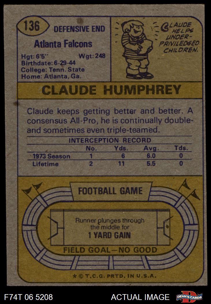 1974 Topps #136 - Claude Humphrey All-Pro 3 - VG