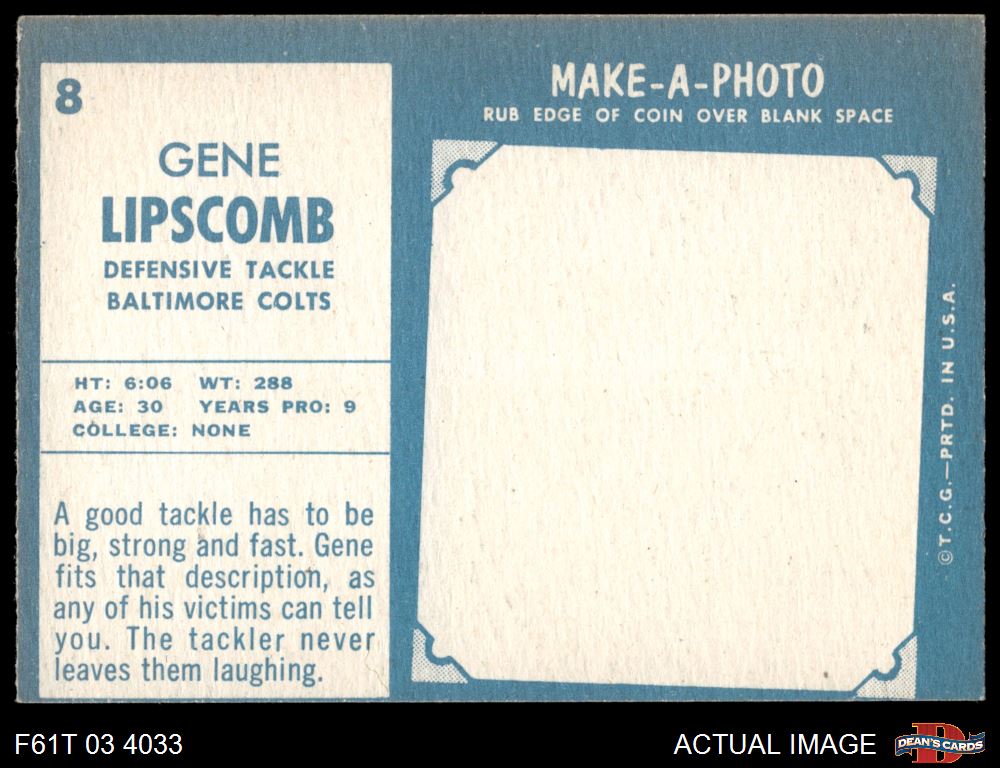 1961 Topps #8 Gene Lipscomb 6 - EX/MT