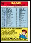 1974 Topps  Checklist  Los Angeles Rams Team Front Thumbnail