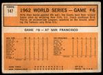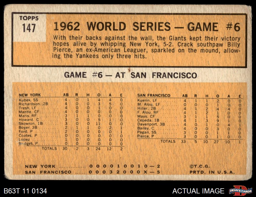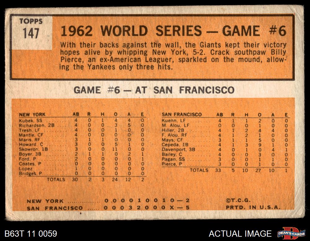 1963 Topps #147 - Billy Pierce 1962 World Series - Game #6 - Pierce Stars in 3-Hit Victory 1 - POOR
