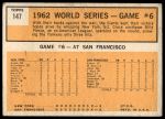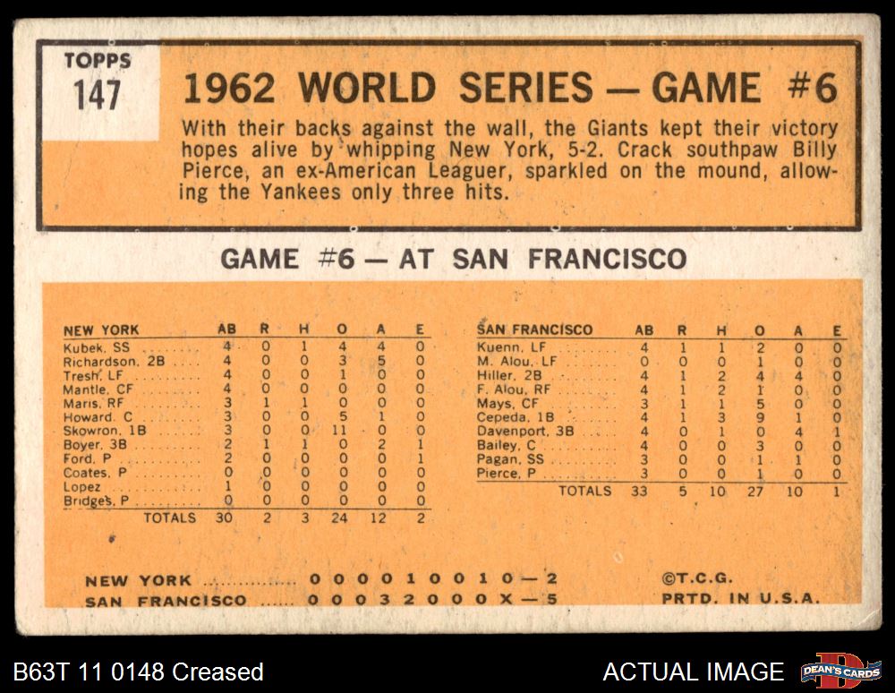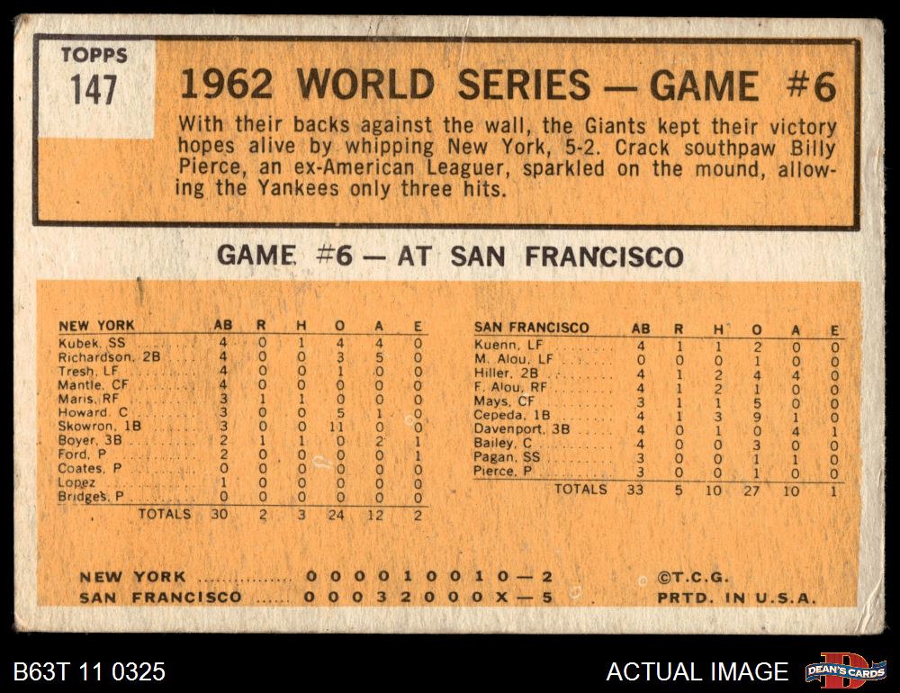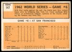 1963 Topps #147 1962 World Series - Game #6 - Pierce Stars in 3-Hit Victory
