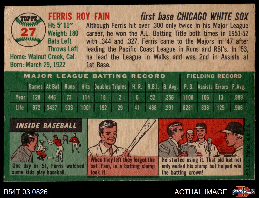 1954 Topps #27 WHT Ferris Fain
