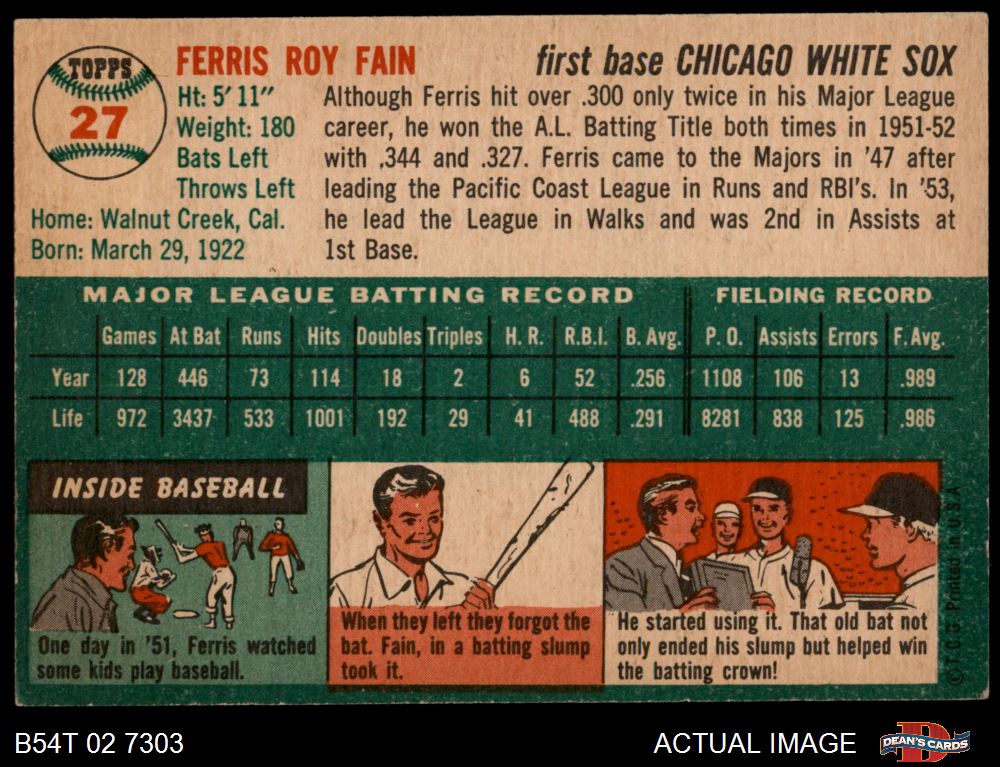 1954 Topps #27 WHT Ferris Fain 6 - EX/MT