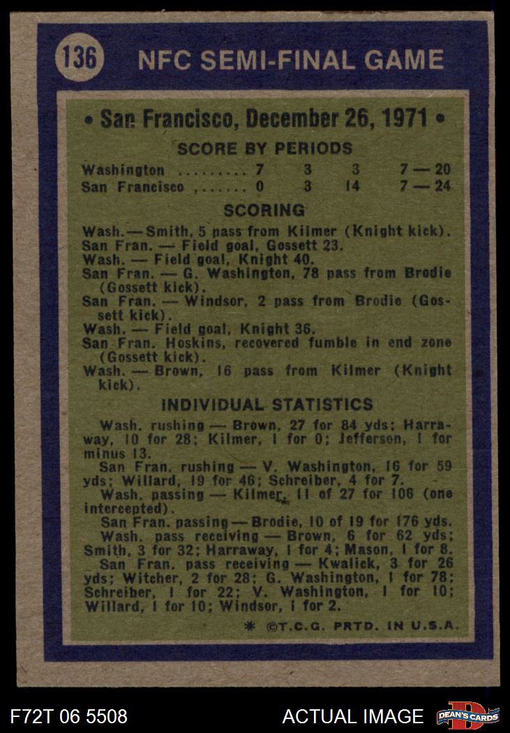 1972 Topps Football Cards (6,808 available)1972 Topps 49ers (492 available)
