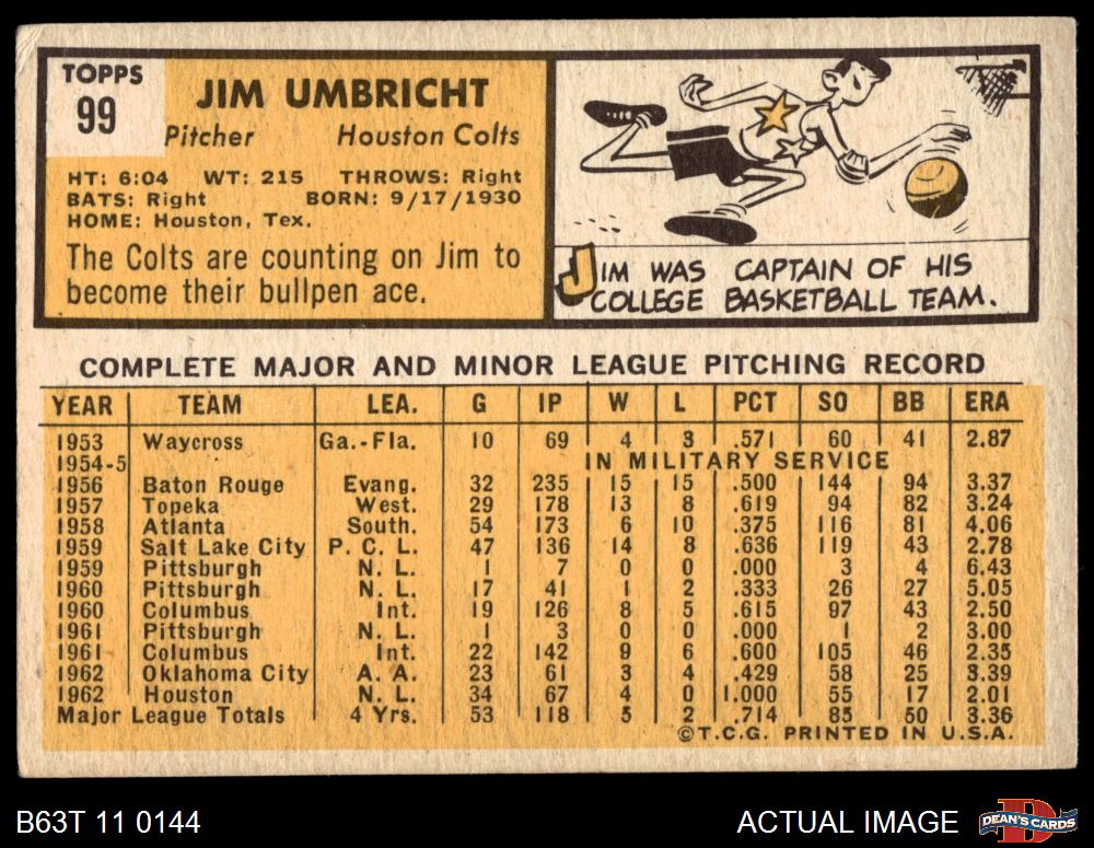 1963 Topps #99 Jim Umbricht 2 - GOOD