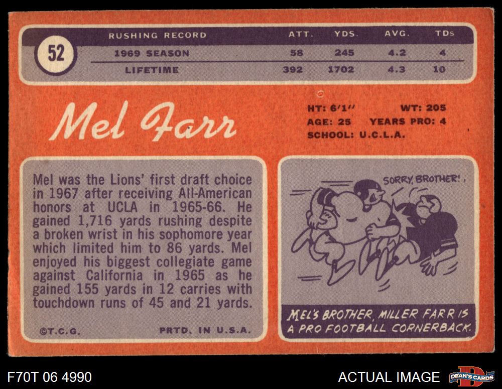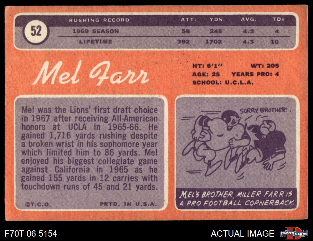 1970 Topps #52 Mel Farr 3.5 - VG+