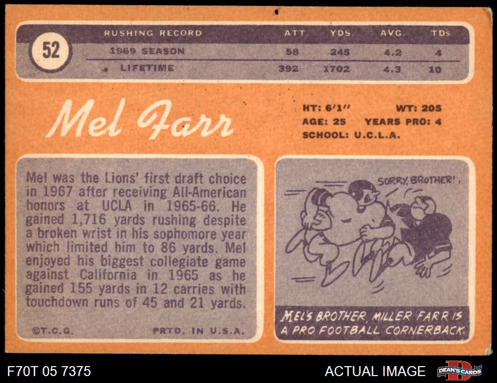 1970 Topps #52 Mel Farr 4 - VG/EX