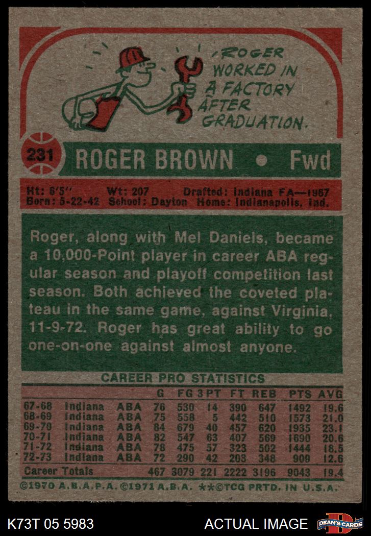 1973 Topps #231 Roger Brown 6 - EX/MT