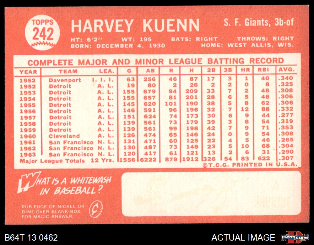 1964 Topps #242 Harvey Kuenn
