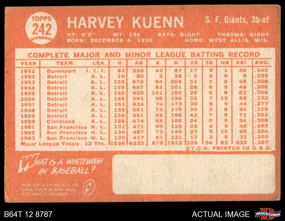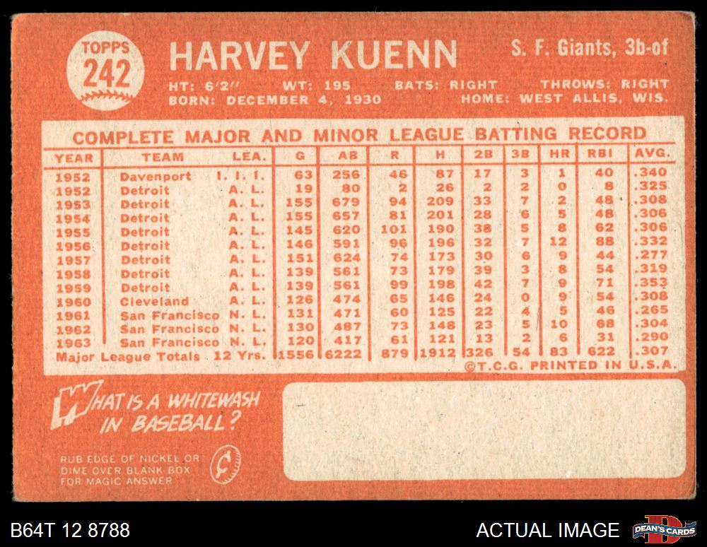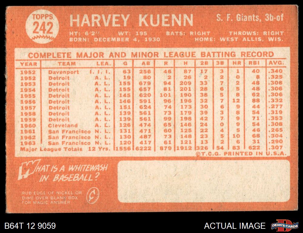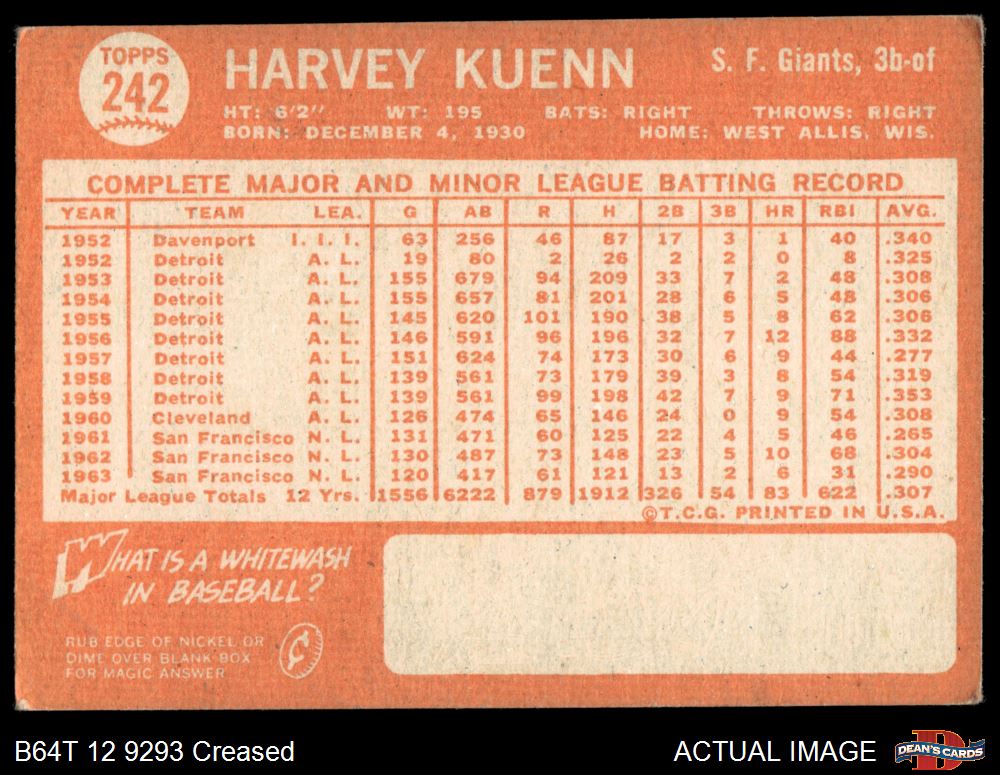 1964 Topps #242 Harvey Kuenn 2 - GOOD