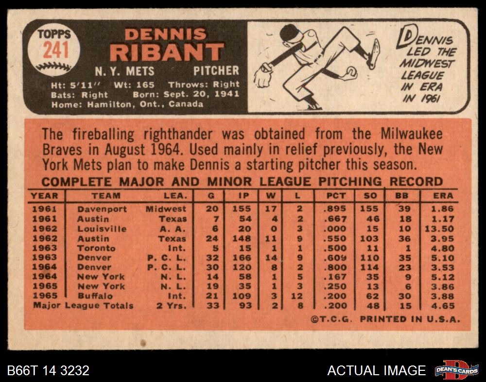1966 Topps #241 Dennis Ribant 4.5 - VG/EX+