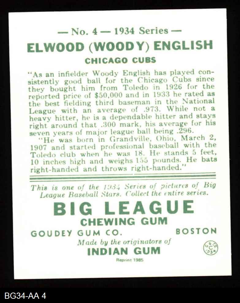 1934 Goudey Reprint #4 Woody English 8 - NM/MT