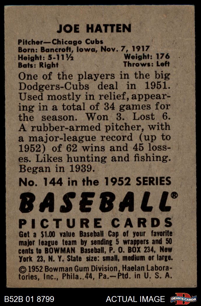 1952 Bowman #144 Joe Hatten 4.5 - VG/EX+