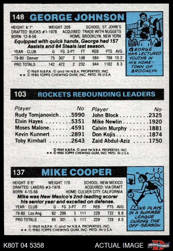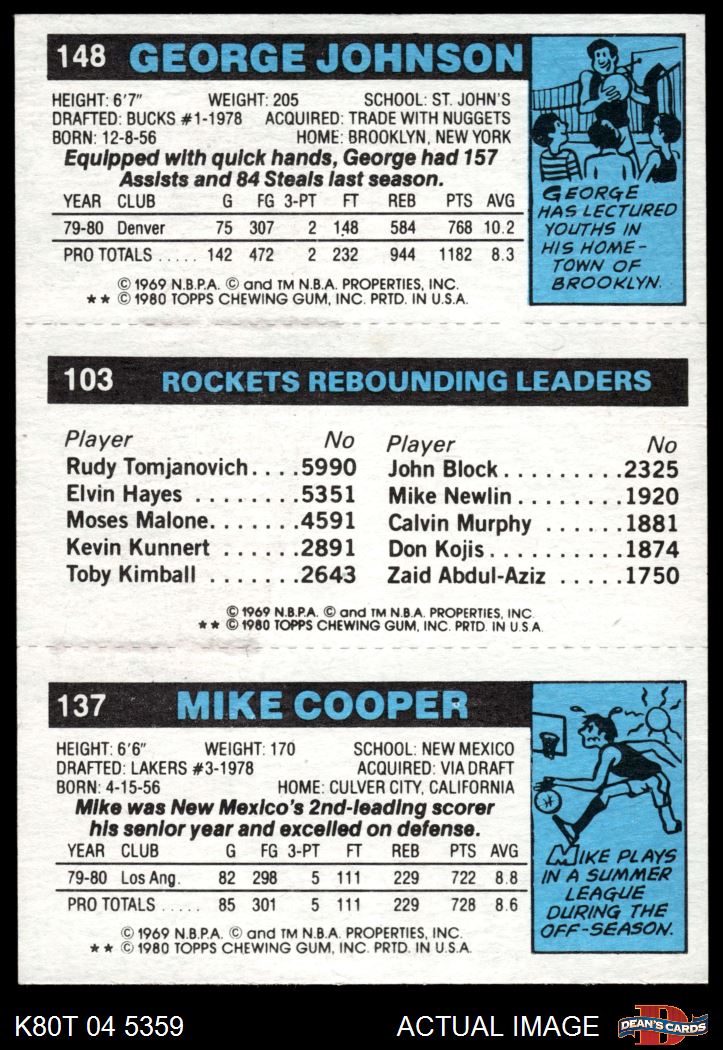 1980 Topps - Mike Cooper / Moses Malone / George Johnson 137 / 103 / 148 7 - NM