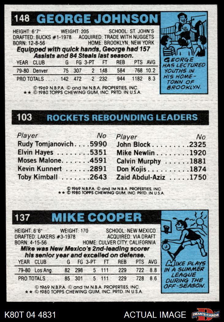 1980 Topps - Mike Cooper / Moses Malone / George Johnson 137 / 103 / 148 8 - NM/MT