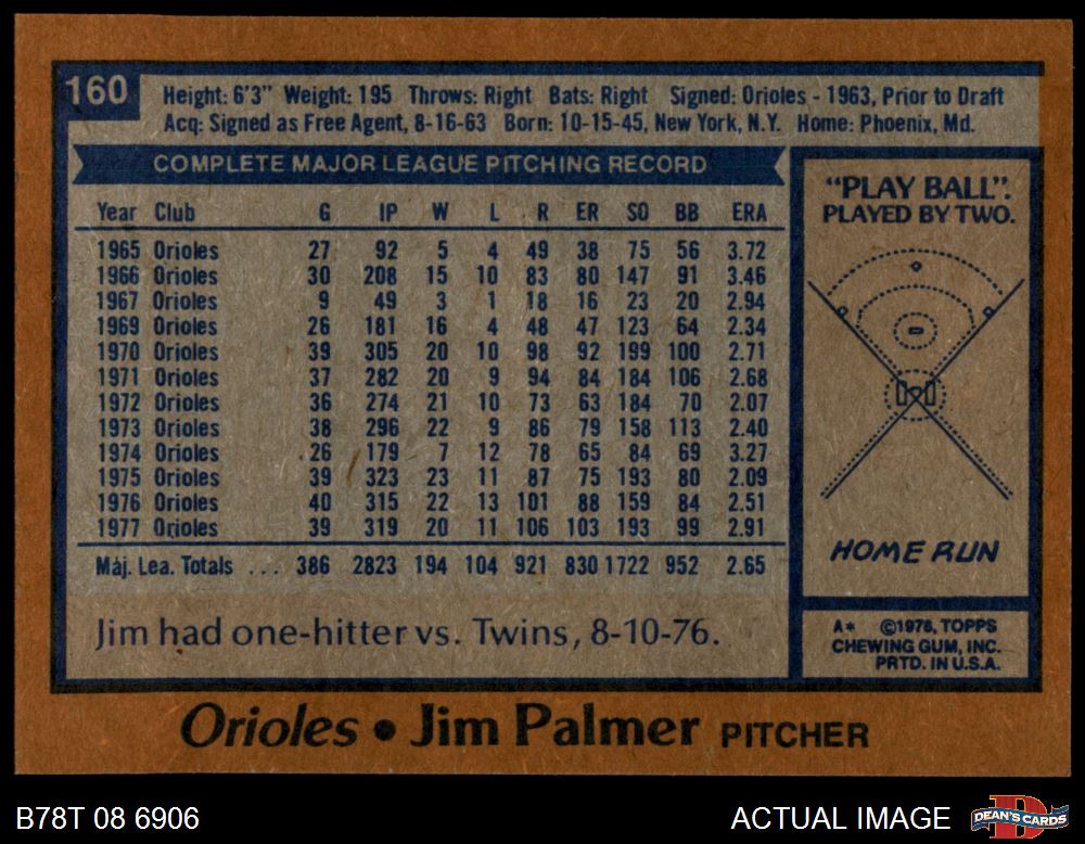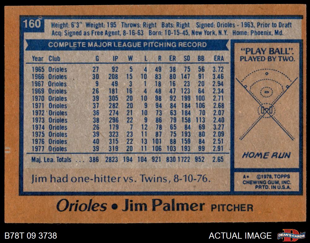 1978 Topps #160 Jim Palmer 6 - EX/MT