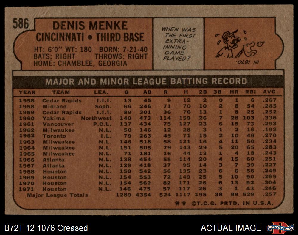 1972 Topps #586 Denis Menke Front Thumbnail