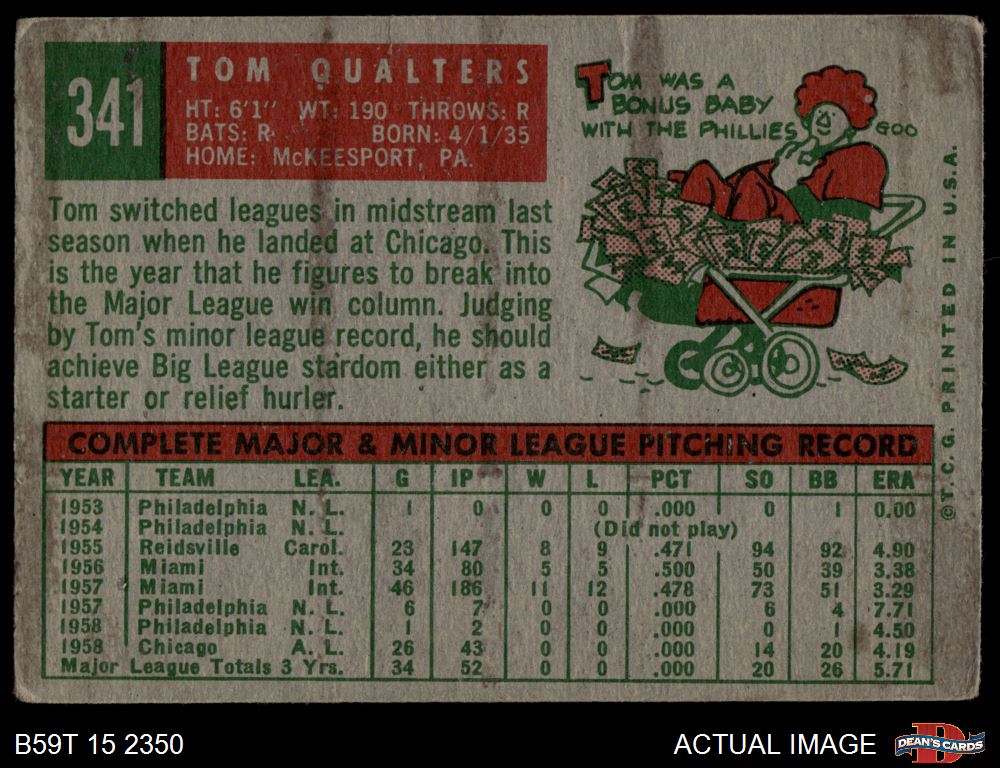 1959 Topps #341 Tom Qualters 1 - POOR