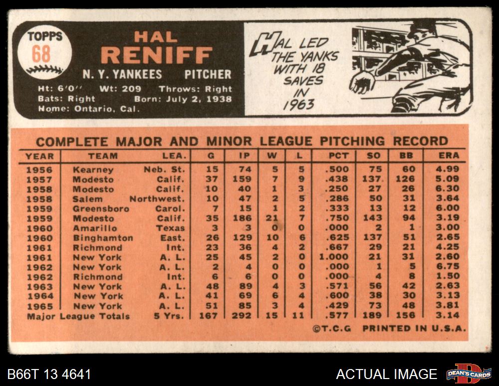 1966 Topps #68 Hal Reniff