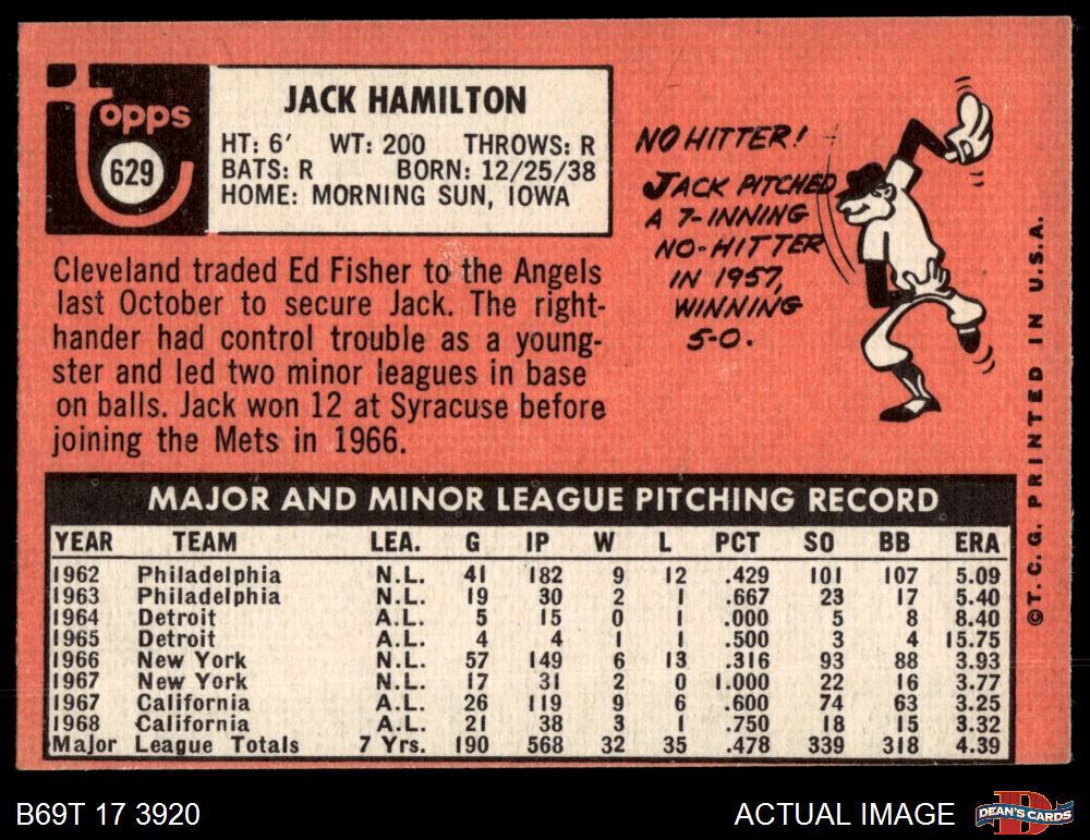 1969 Topps #629 Jack Hamilton 5 - EX