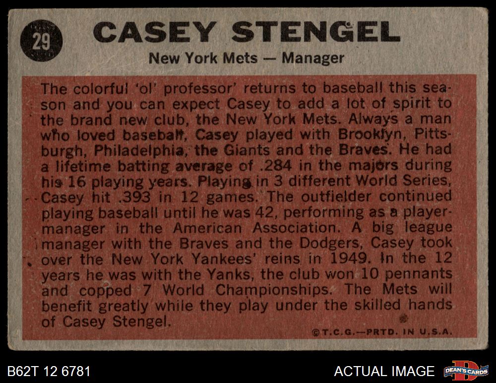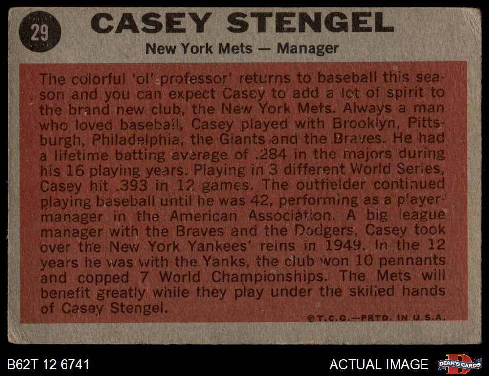 1962 Topps #29 Casey Stengel