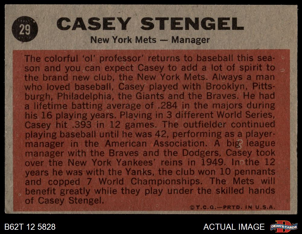 1962 Topps #29 Casey Stengel Front Thumbnail