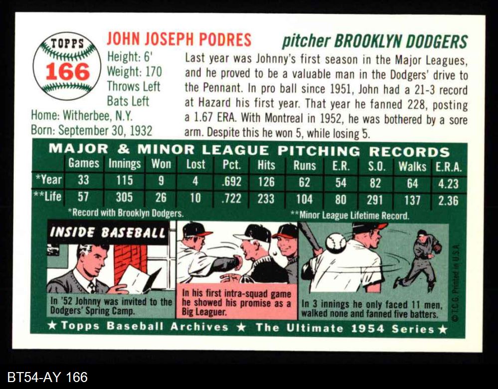 1954 Topps Archives #166 Johnny Podres 8 - NM/MT