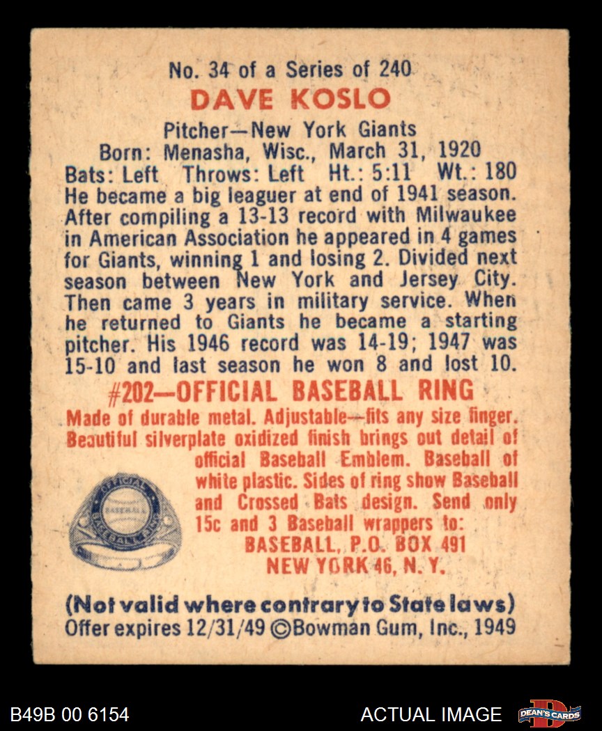 1949 Bowman #34 Dave Koslo 6 - EX/MT