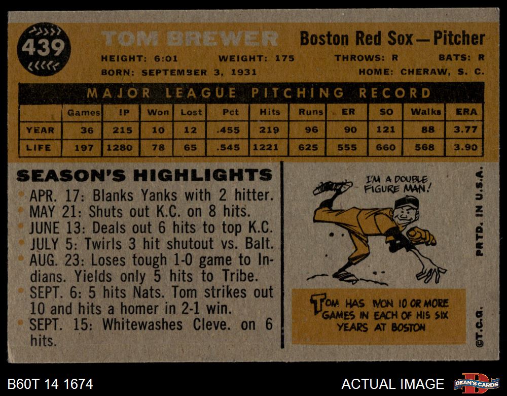 1960 Topps #439 Tom Brewer 3 - VG