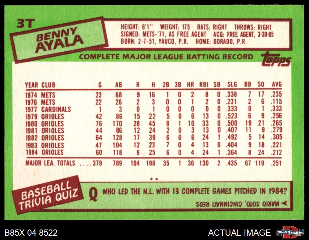 1985 Topps Traded Baseball Cards (762 available)1985 Topps Traded Indians (41 available)