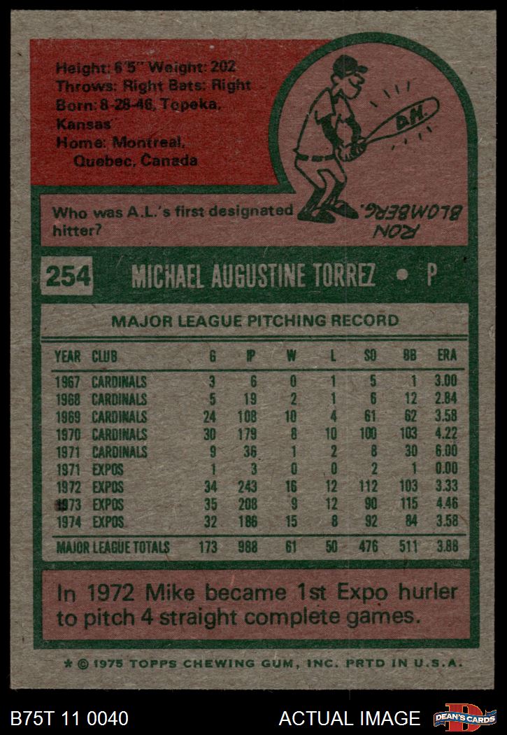 1975 Topps #254 Mike Torrez 6 - EX/MT