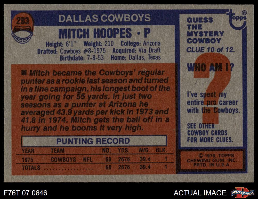 1976 Topps #283 Mitch Hoopes 6 - EX/MT