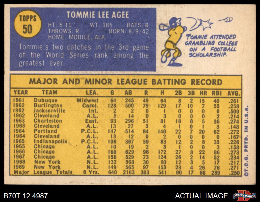 1970 Topps #50 Tommie Agee 4 - VG/EX