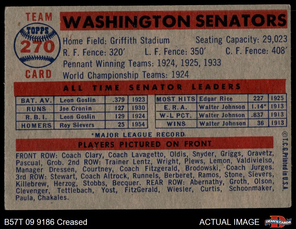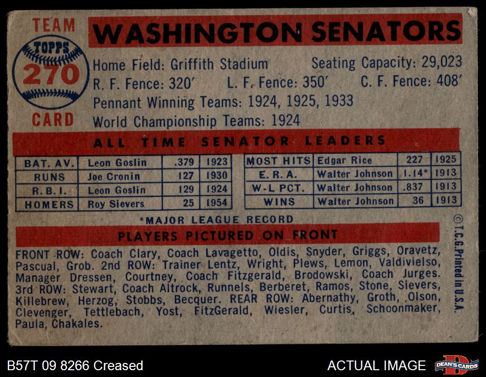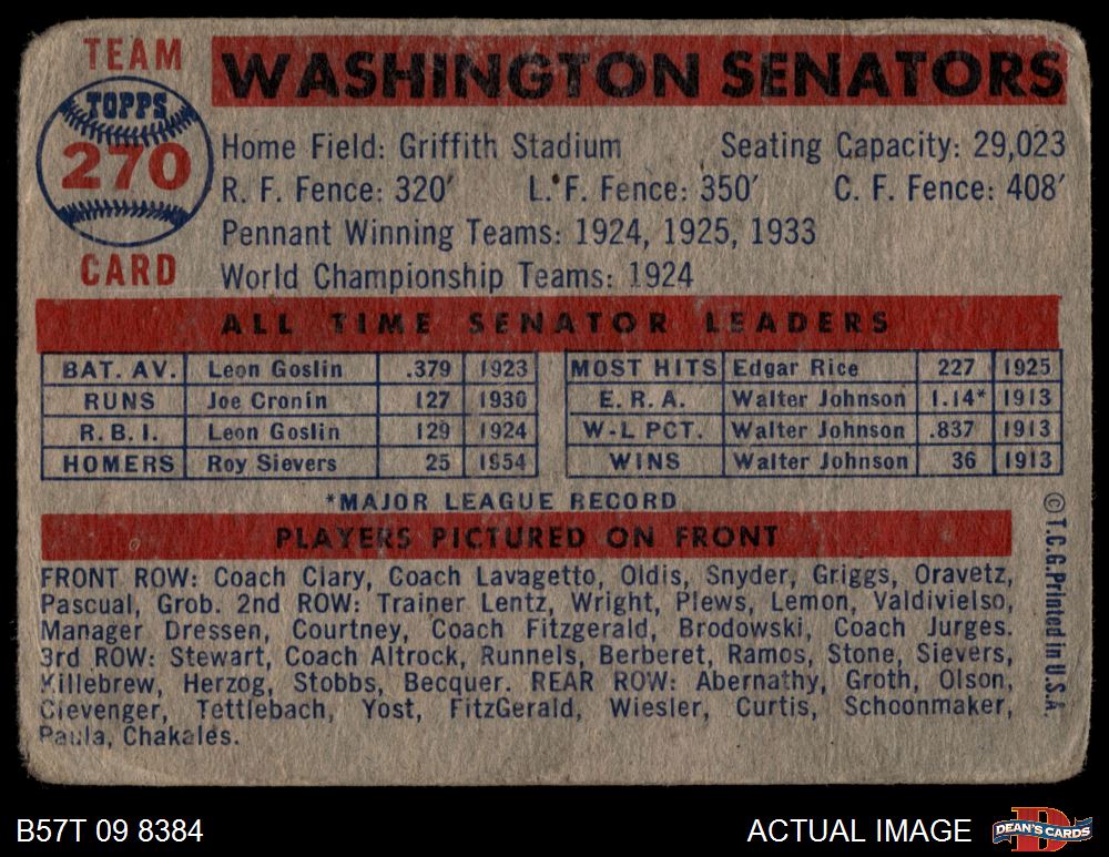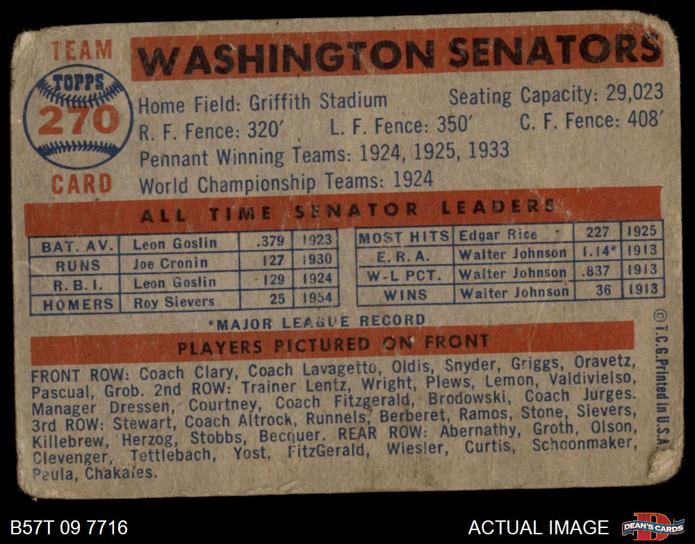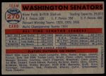 1957 Topps #270 Senators Team