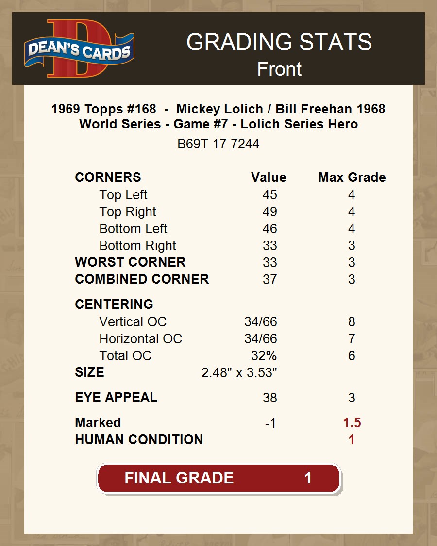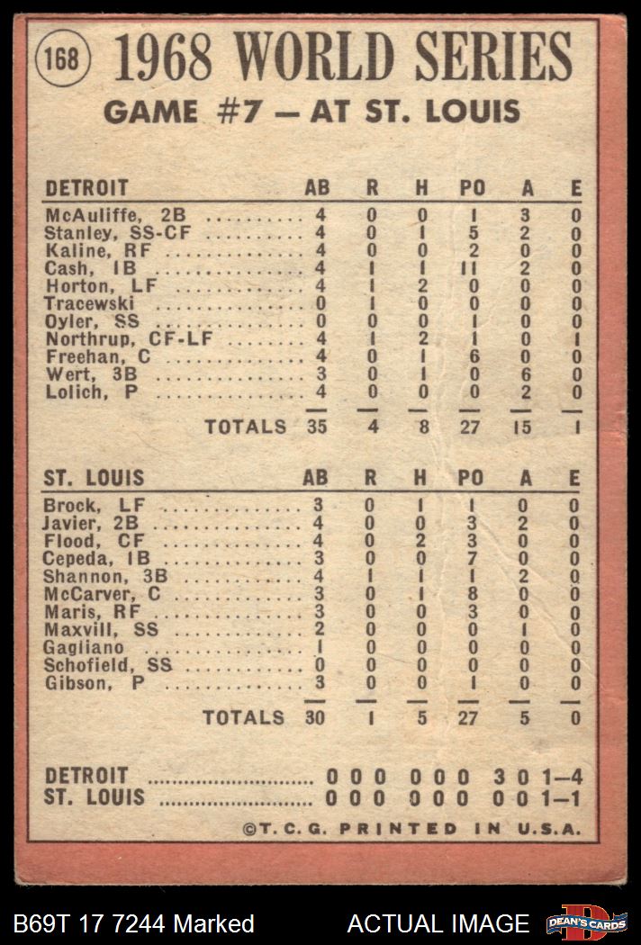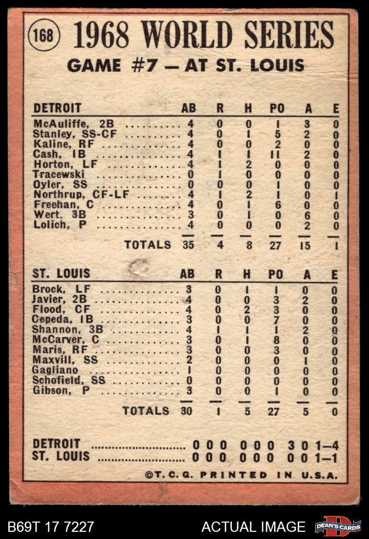 1969 Topps #168 - Mickey Lolich / Bill Freehan 1968 World Series - Game #7 - Lolich Series Hero 1 - POOR