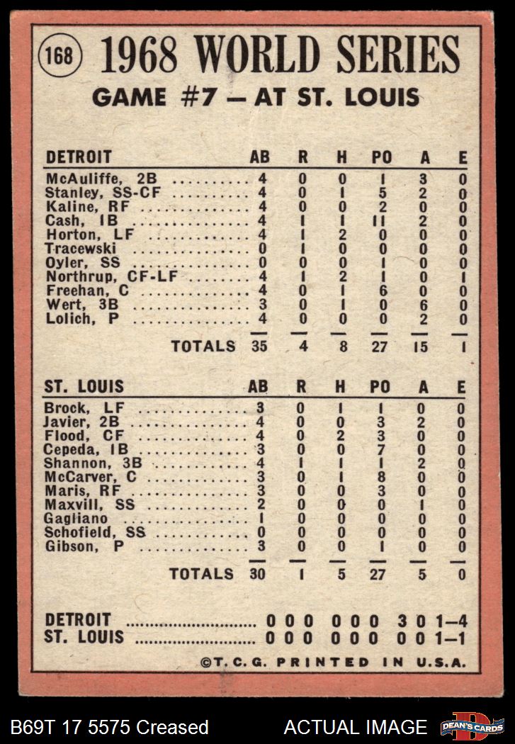 1969 Topps #168 - Mickey Lolich / Bill Freehan 1968 World Series - Game #7 - Lolich Series Hero 2 - GOOD
