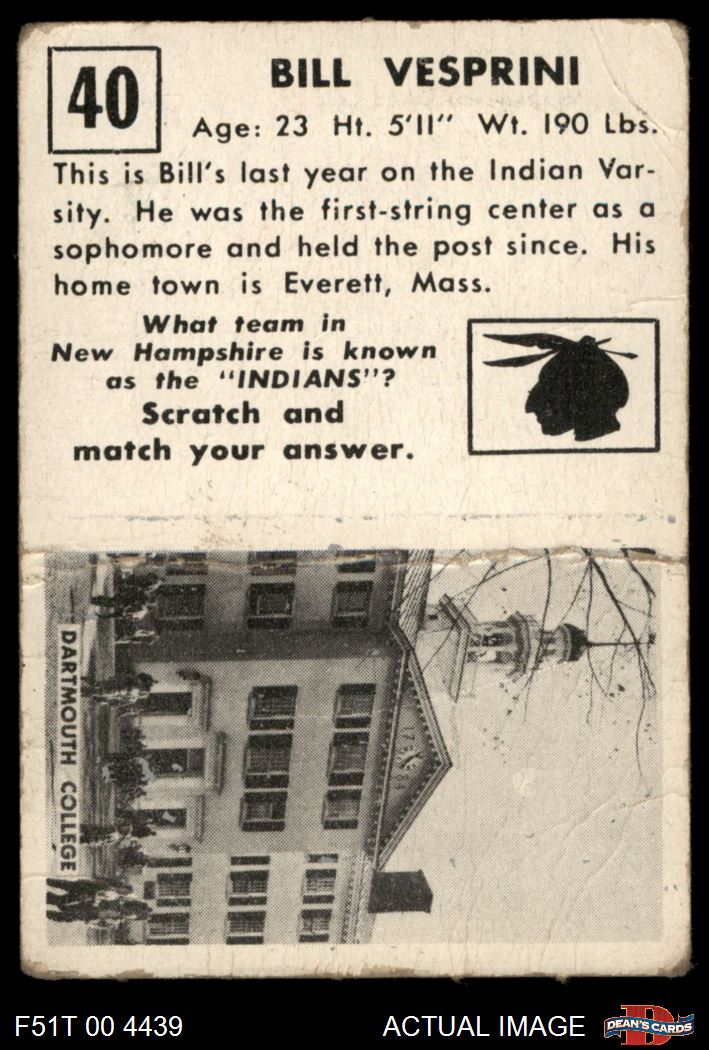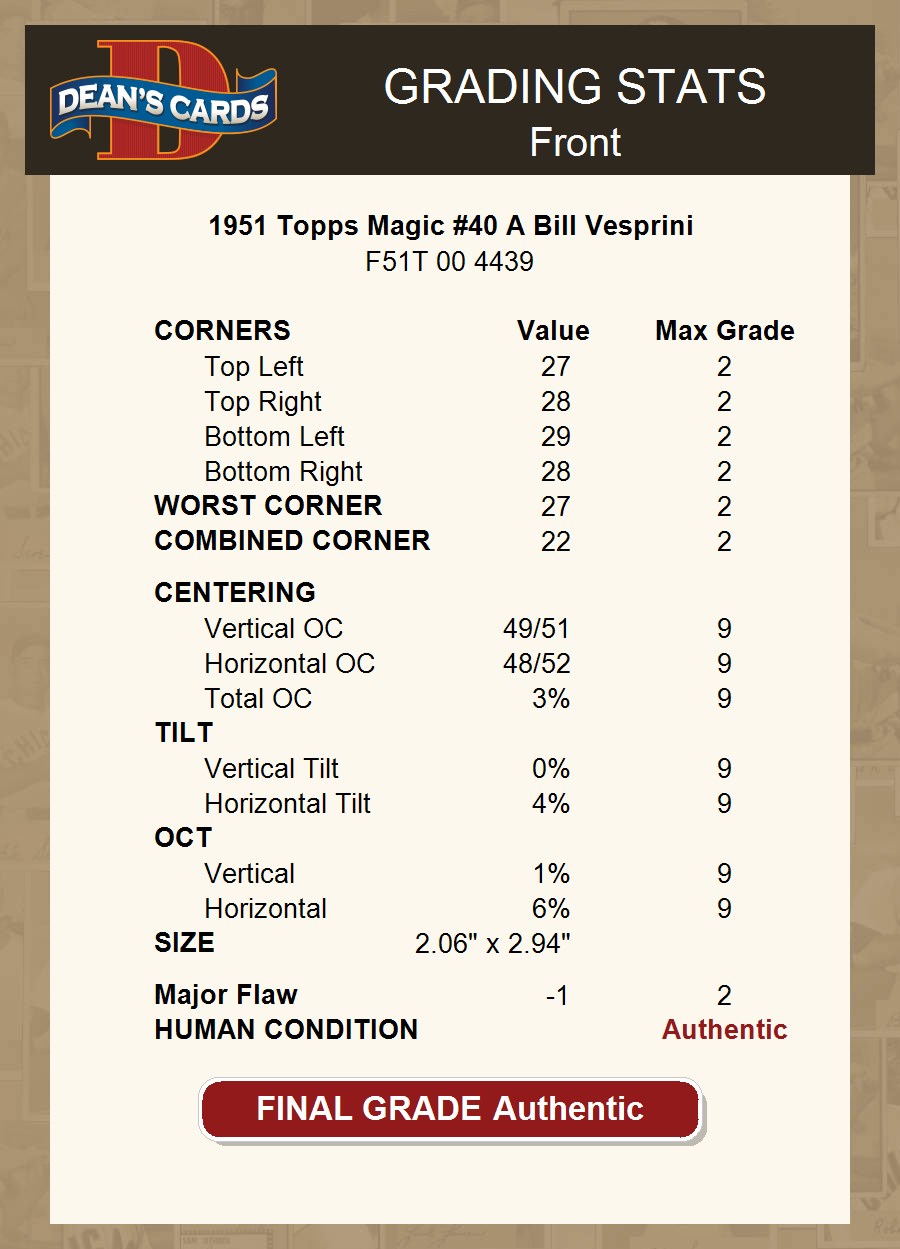 1951 Topps Magic #40 A Bill Vesprini AUTHENTIC