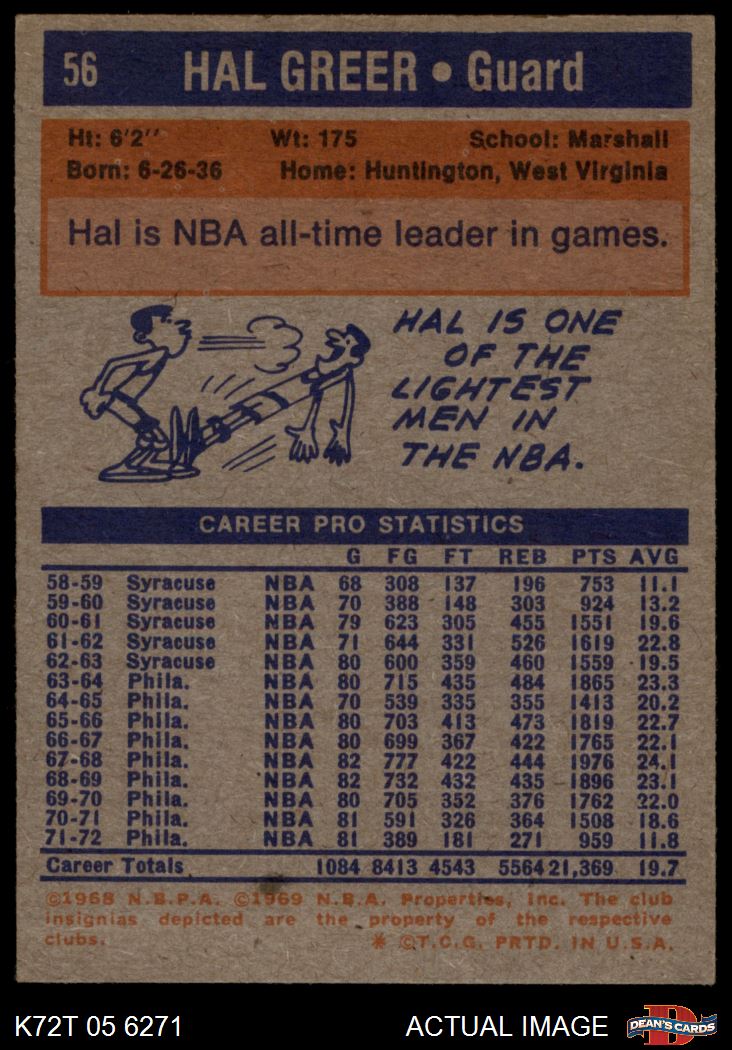1972 Topps #56 Hal Greer 6 - EX/MT
