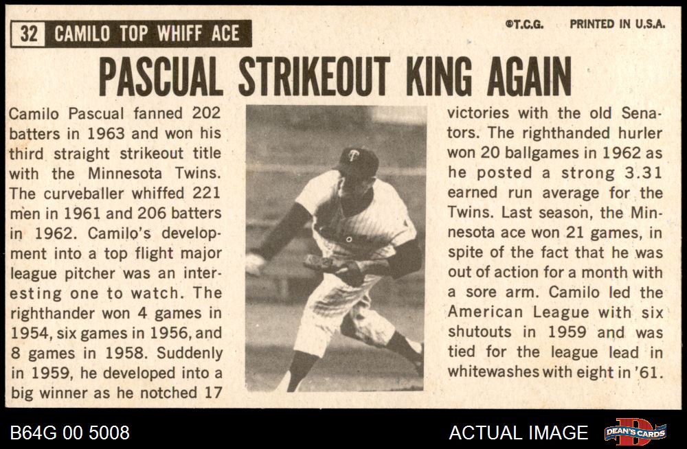 1964 Topps Giants #32 Camilo Pascual 8 - NM/MT