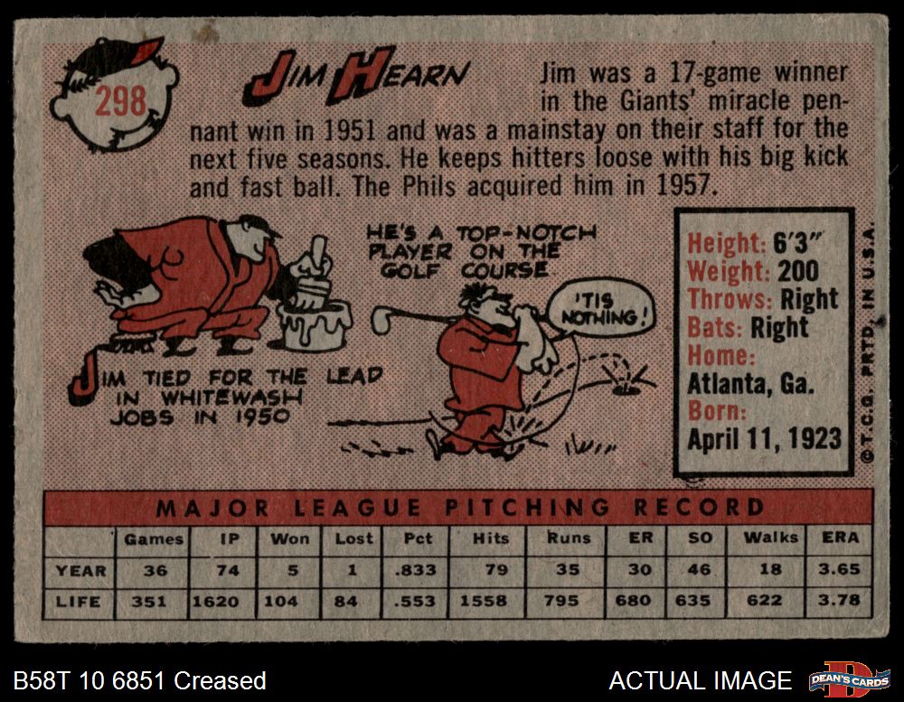 1958 Topps #298 Jim Hearn 2 - GOOD