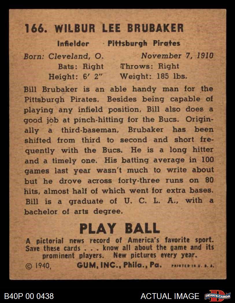 1940 Play Ball #166 Bill Brubaker 3 - VG