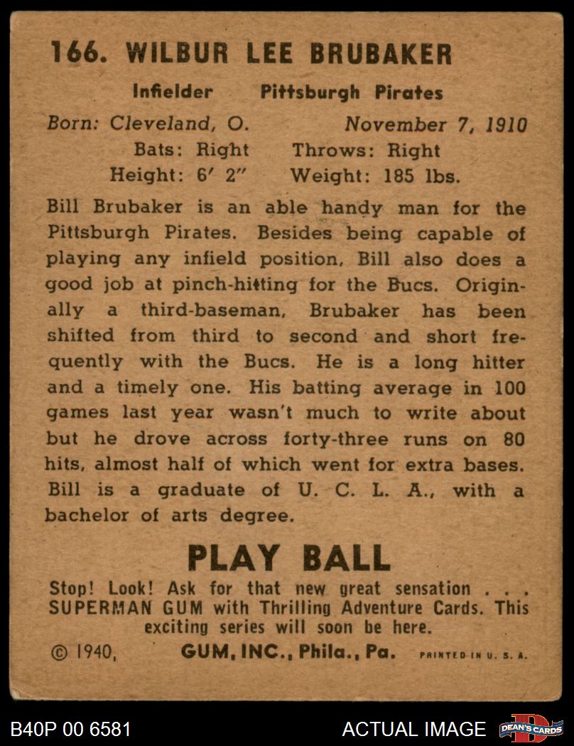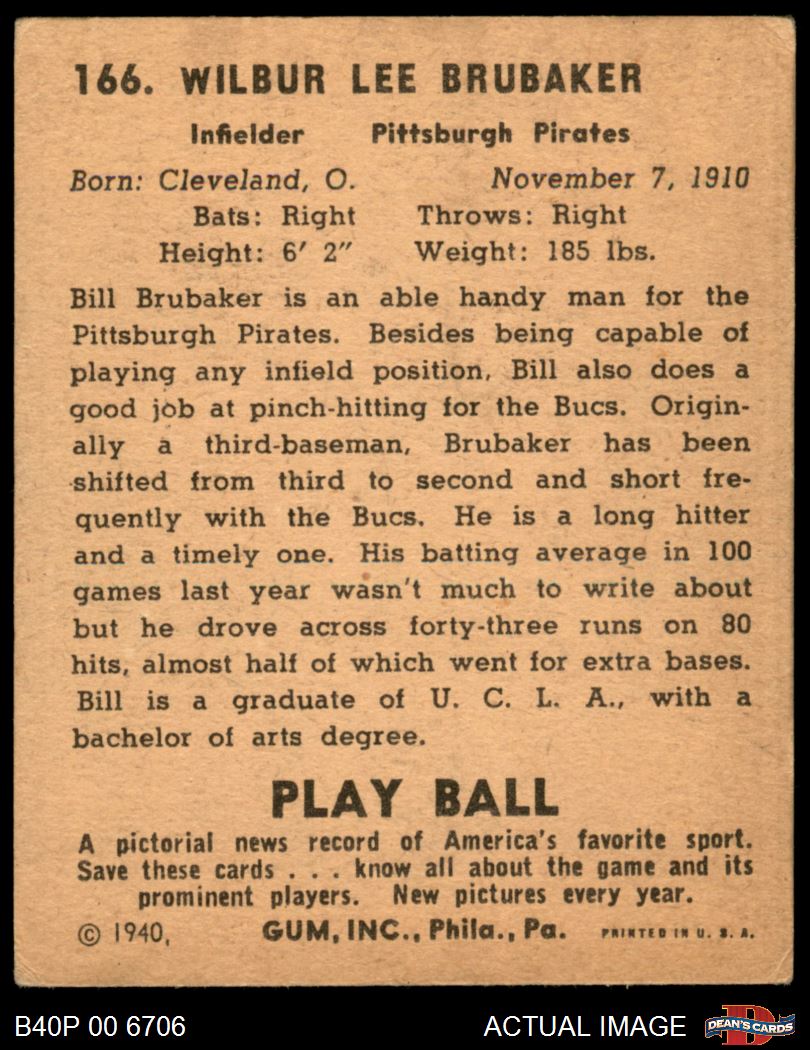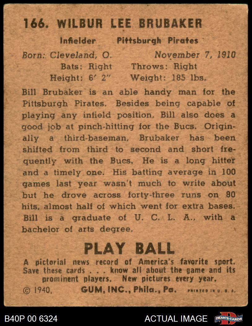 1940 Play Ball #166 Bill Brubaker 4 - VG/EX