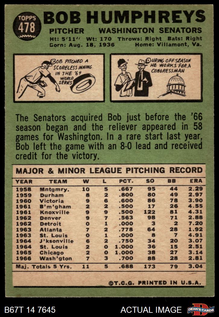 1967 Topps #478 Bob Humphreys