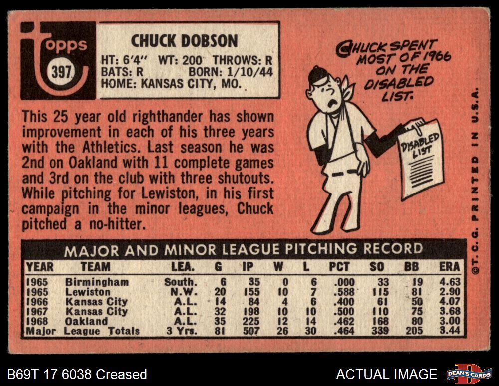 1969 Topps #397 Chuck Dobson 2 - GOOD