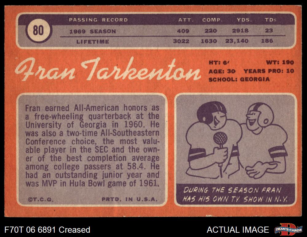 1970 Topps #80 Fran Tarkenton 3 - VG